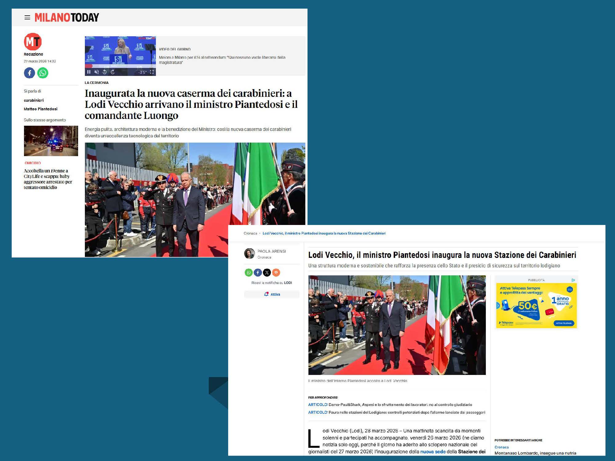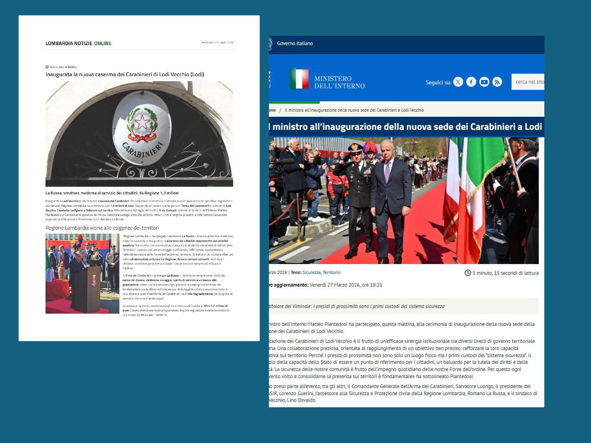 Inaugurazione della nuova Stazione dell'Arma dei Carabinieri a Lodi Vecchio