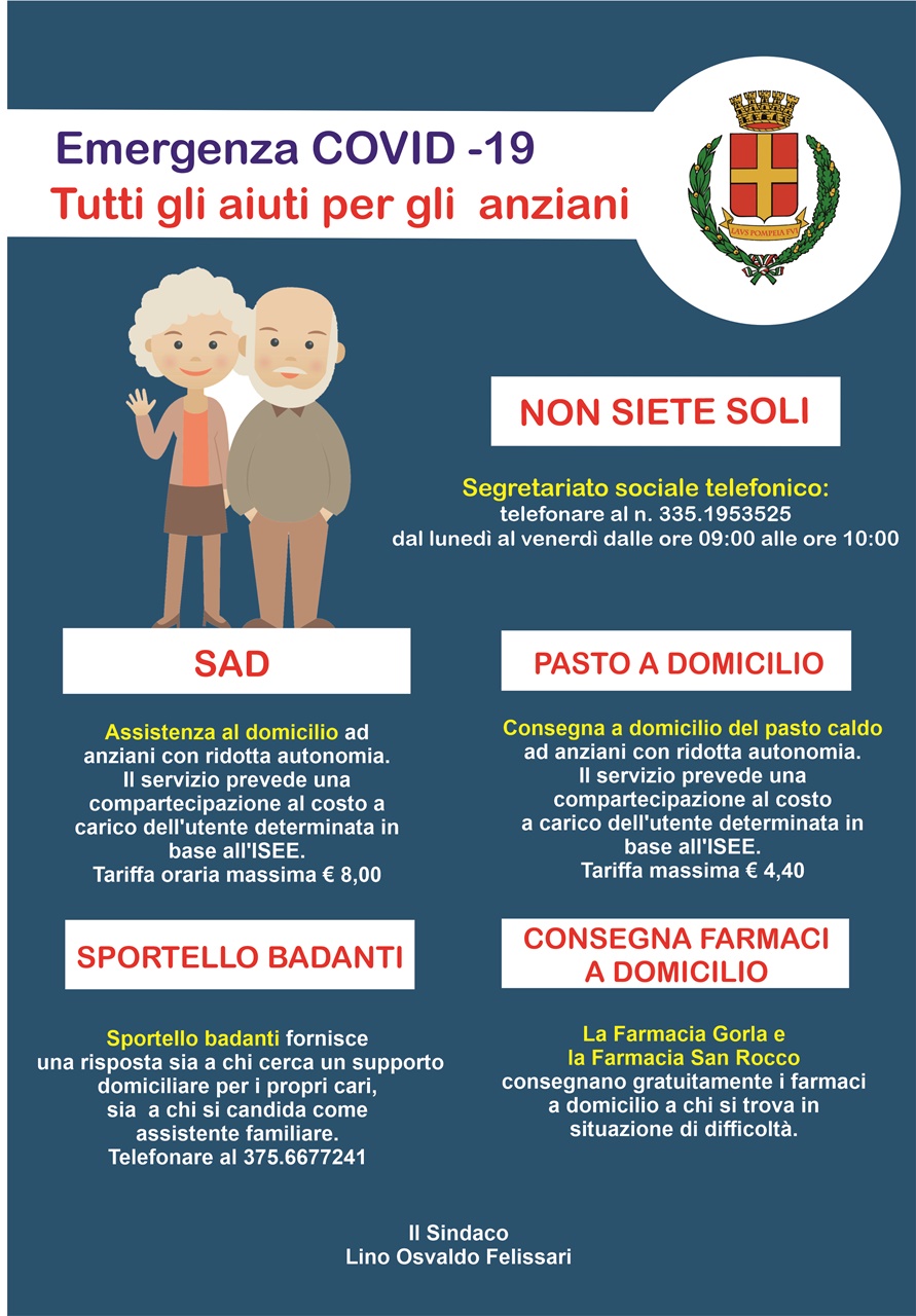 La nostra locandina informativa che riepiloga tutti gli aiuti per gli anziani attivi nel Comune di Lodi Vecchio. ---