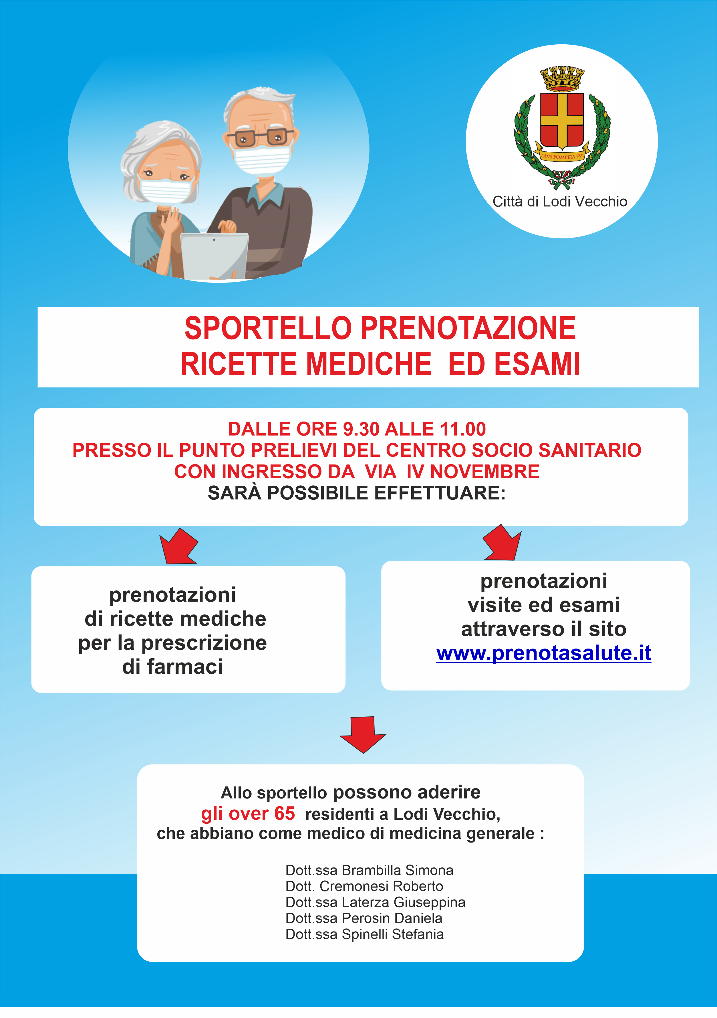 Allo sportello possono aderire gli over 65 residenti a Lodi Vecchio,che abbiano come medico di medicina generale