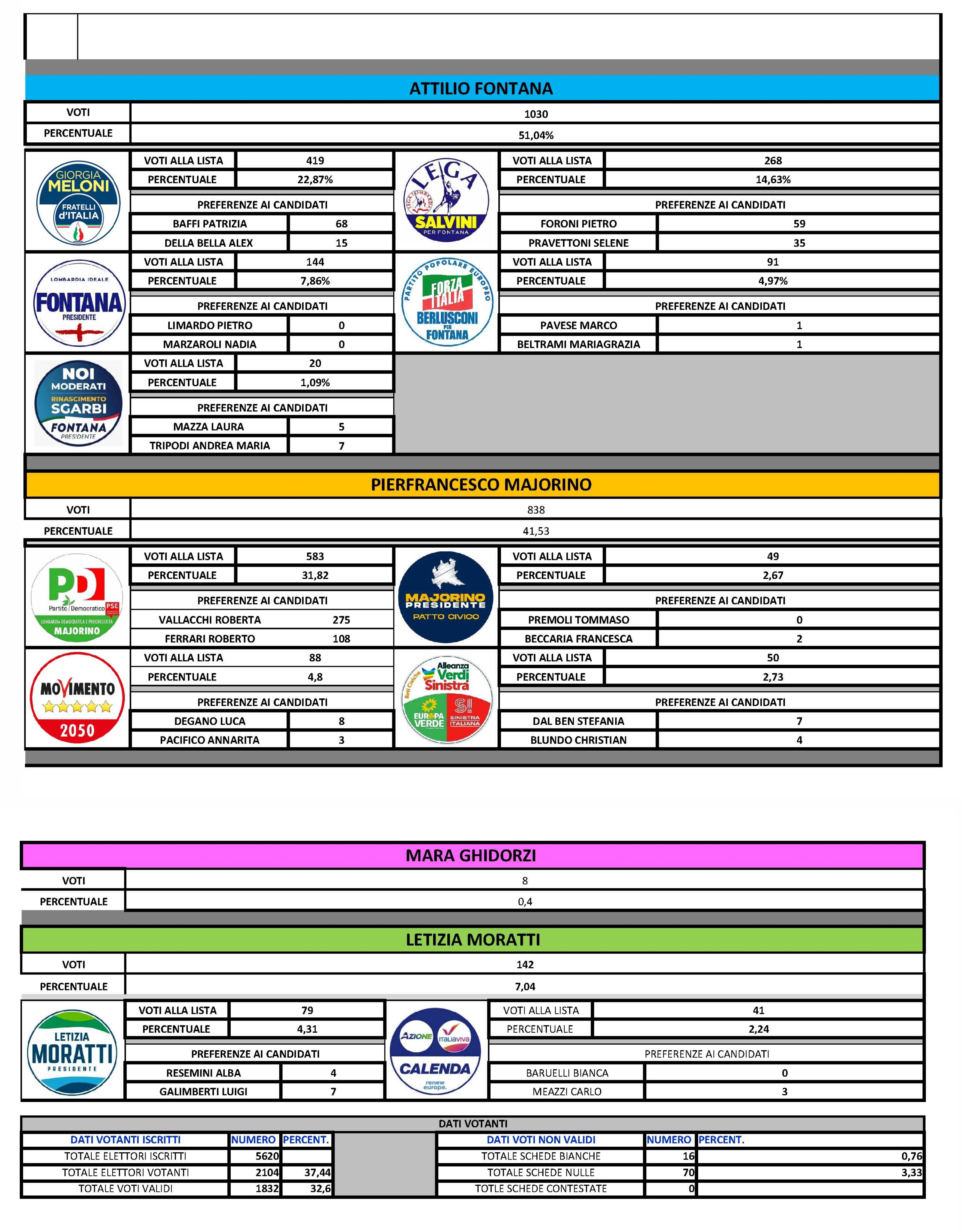 Elezioni regionali 2023 RISULTATI ELETTORALI