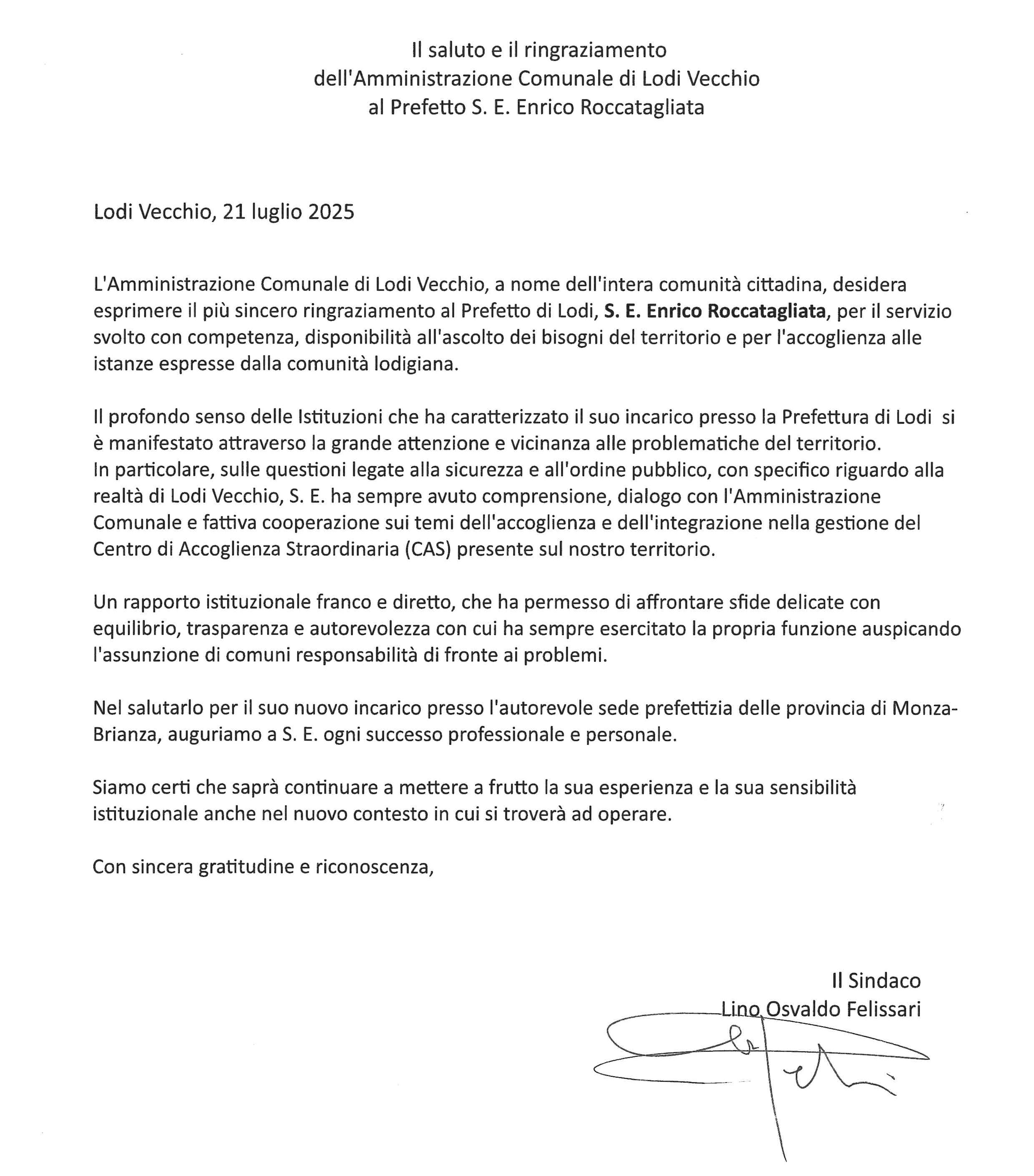 Saluto e ringraziamento S.E. Il Prefetto Enrico Roccatagliata