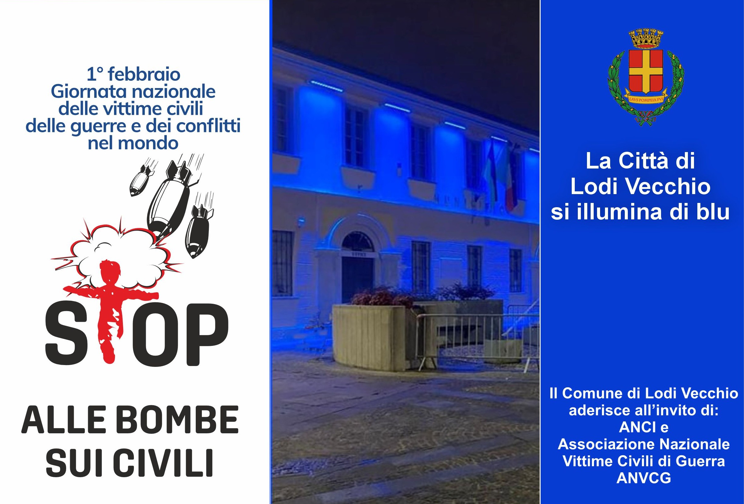 Il 1 febbraio la città di Lodi Vecchio aderisce all’invito di ANCI e dell’Associazione Nazionale Vittime Civili di Guerra (ANVCG): il Municipio si illumina di blu.