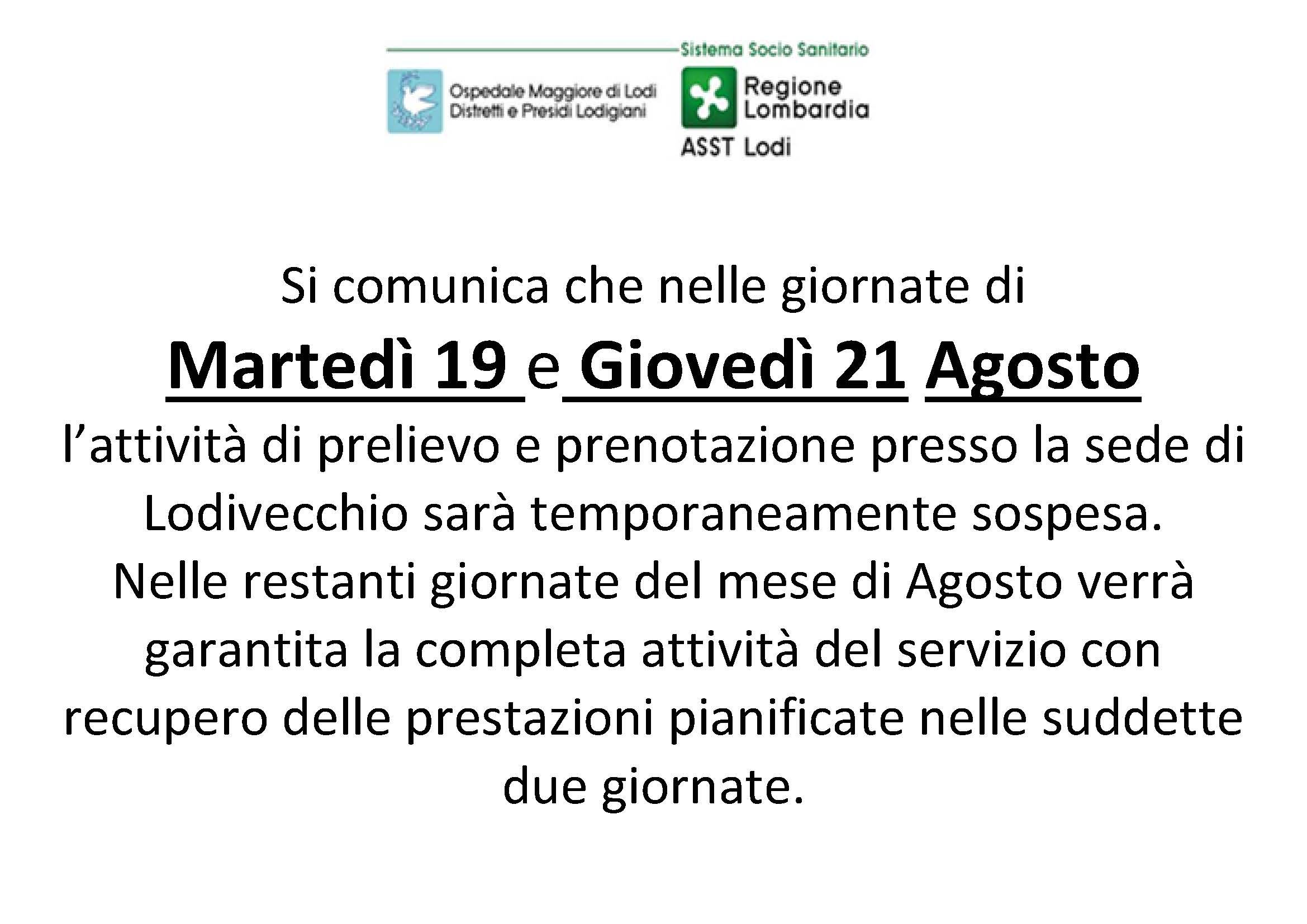 Comunicazioni ai cittadini - servizio prelievi