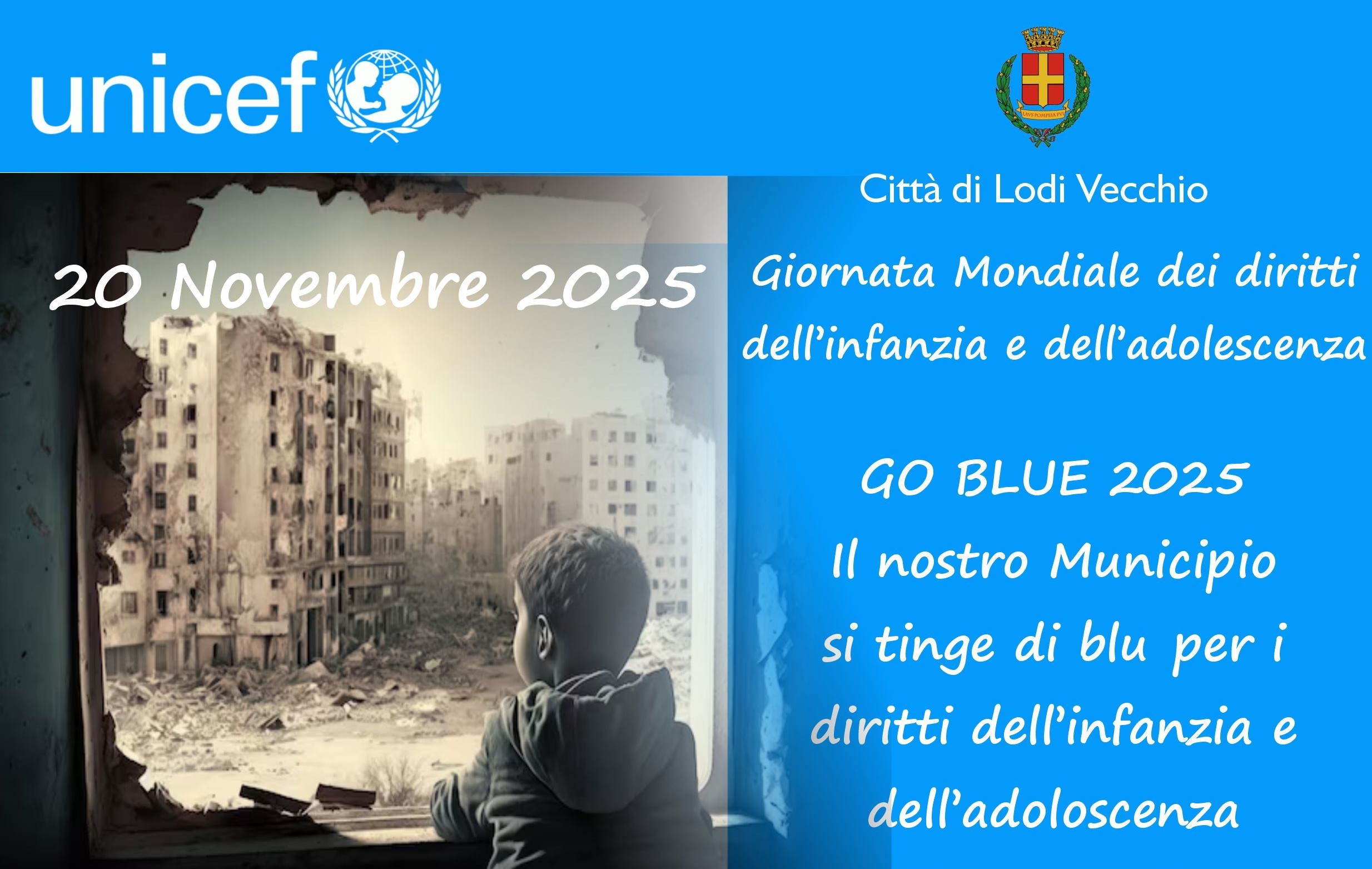 Anche Lodi Vecchio aderisce a “Go Blue”, iniziativa promossa da UNICEF a livello globale per illuminare di blu un monumento o un edificio rappresentativo della città.