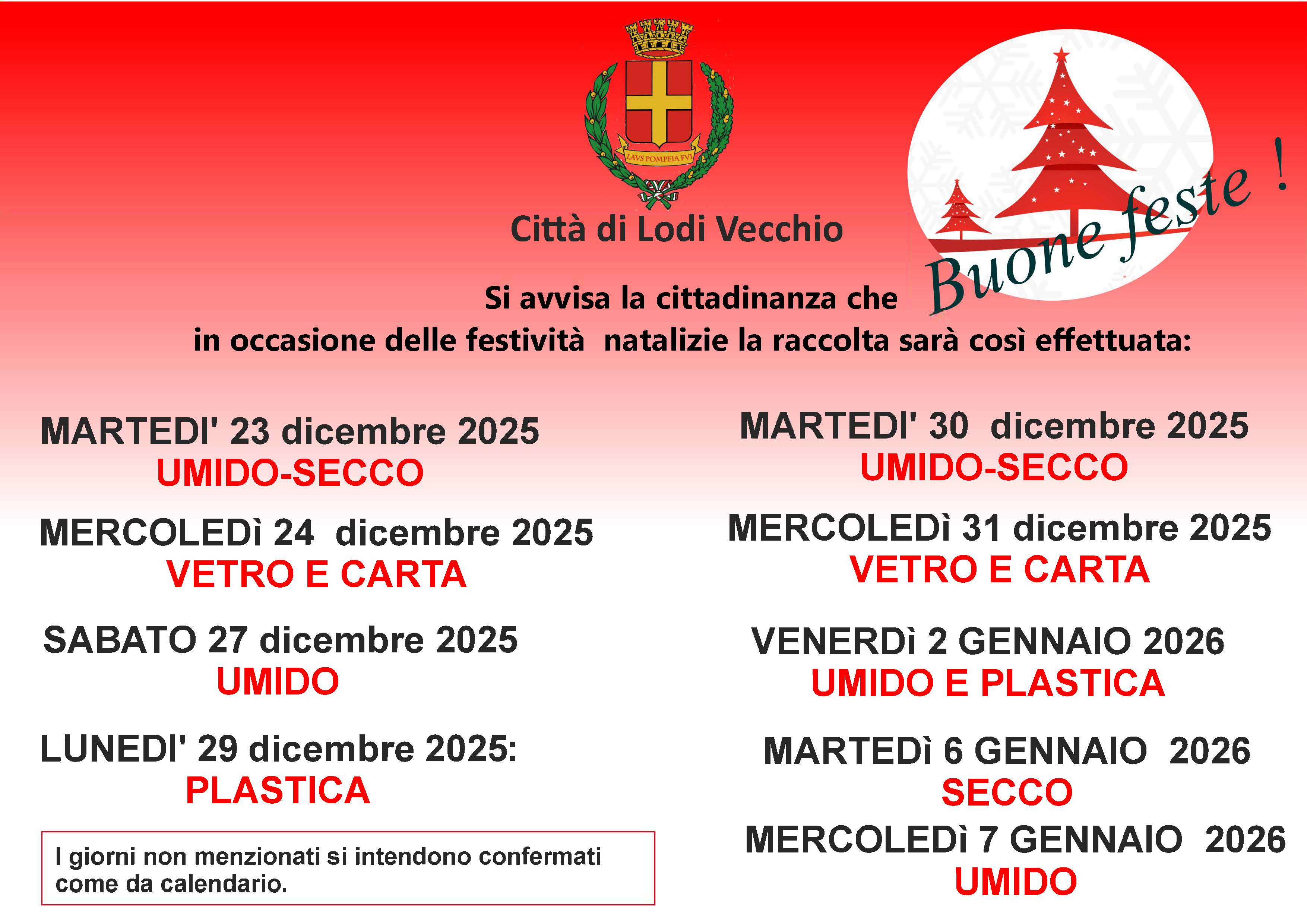“Si avvisa la cittadinanza che in occasione delle festività natalizie la raccolta sarà così effettuata: