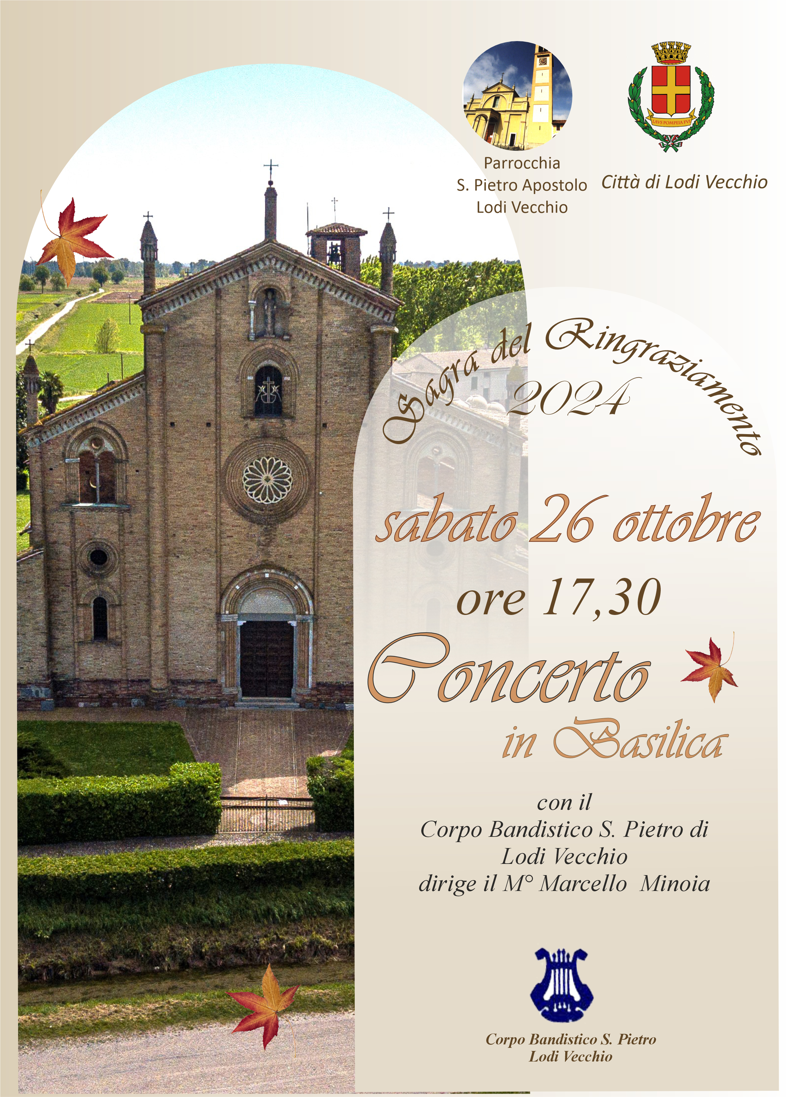 Sabato alle ore 17,30 Concerto in Basilica con il Corpo Bandistico San Pietro di Lodi Vecchio