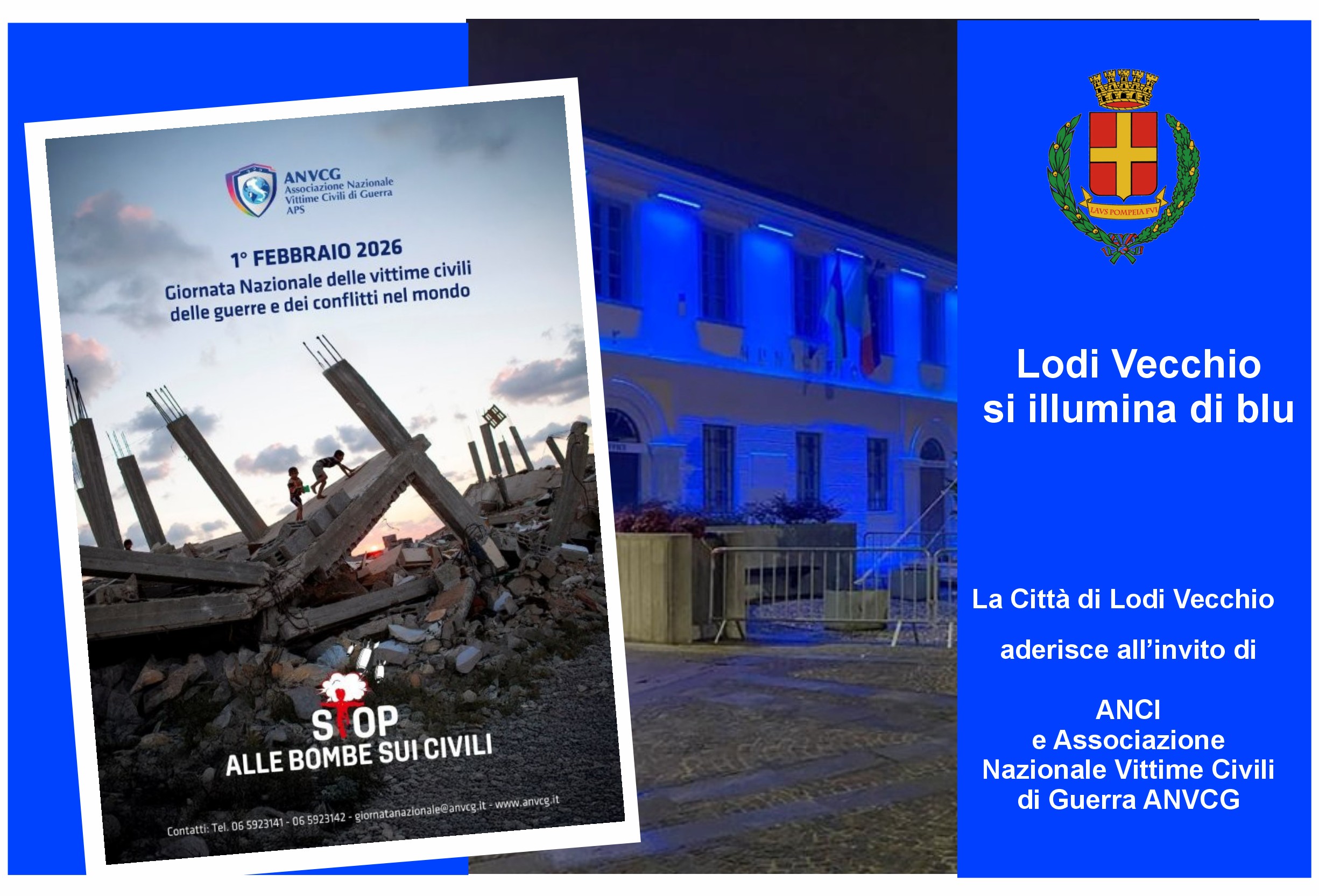 Il 1 febbraio la città di Lodi Vecchio aderisce all’invito di ANCI e dell’Associazione Nazionale Vittime Civili di Guerra (ANVCG): il Municipio si illumina di blu.